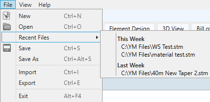- Recent Files - Here you can see a list of files that have been viewed recently - click the file to reload it.
